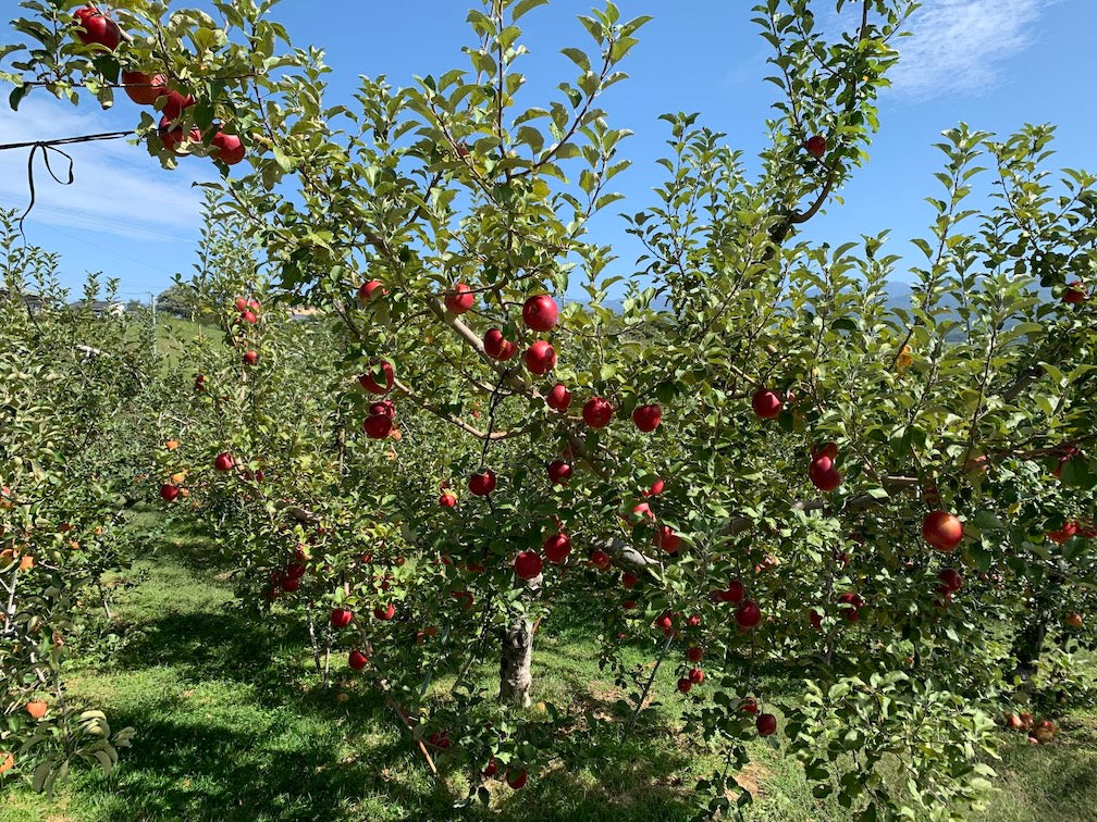 夏になると、伊那谷特有の昼夜の寒暖差がりんごに甘みと酸味のバランスを与えていきます。太陽の恵みを存分に浴びながら、果実は日に日に大きくなっていきます。この時期、りんごたちは成長の物語を紡ぎ始めます。